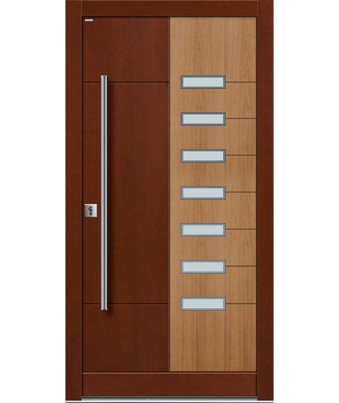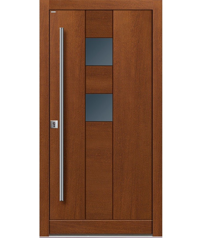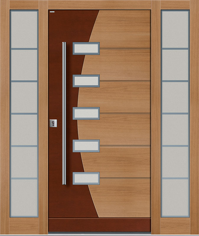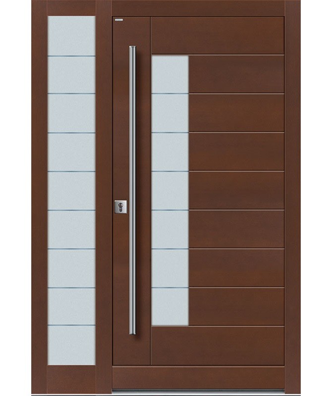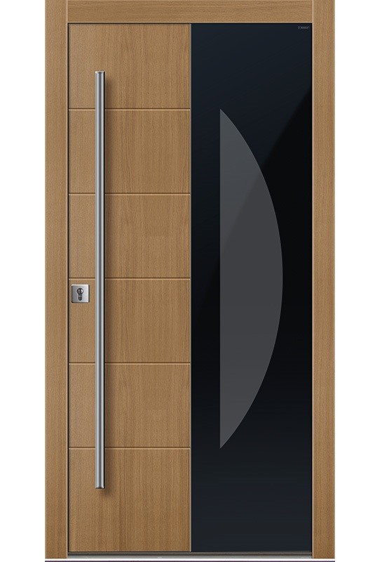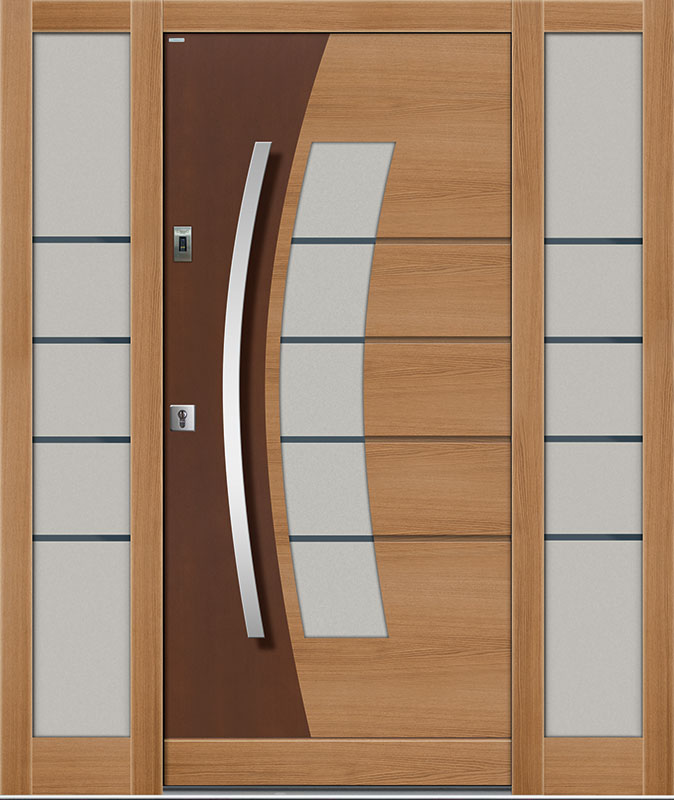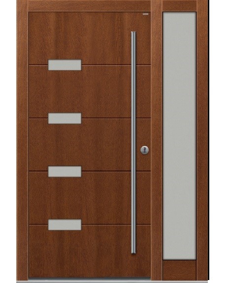 Drzwi zewnętrzne Top Design GLASS to klasyka elegancji i wysoka jakość. Innowacyjne połączenie płaszczyzn drewna i szkła nadaje niepowtarzalny wygląd kolekcji Top Design GLASS. Naturalne drewno połączone ze szkłem, z uwzględnieniem odpowiednich proporcji wielkości i kształtu przeszkleń, to efektowne połączenie dla osób lubiących eleganckie rozwiązania. Wzornictwo, dobrana kolorystyka oraz materiał, z jakiego wykonane są ekskluzywne drzwi wejściowe do domu Top Design GLASS, nadają im indywidualny i niepowtarzalny charakter.