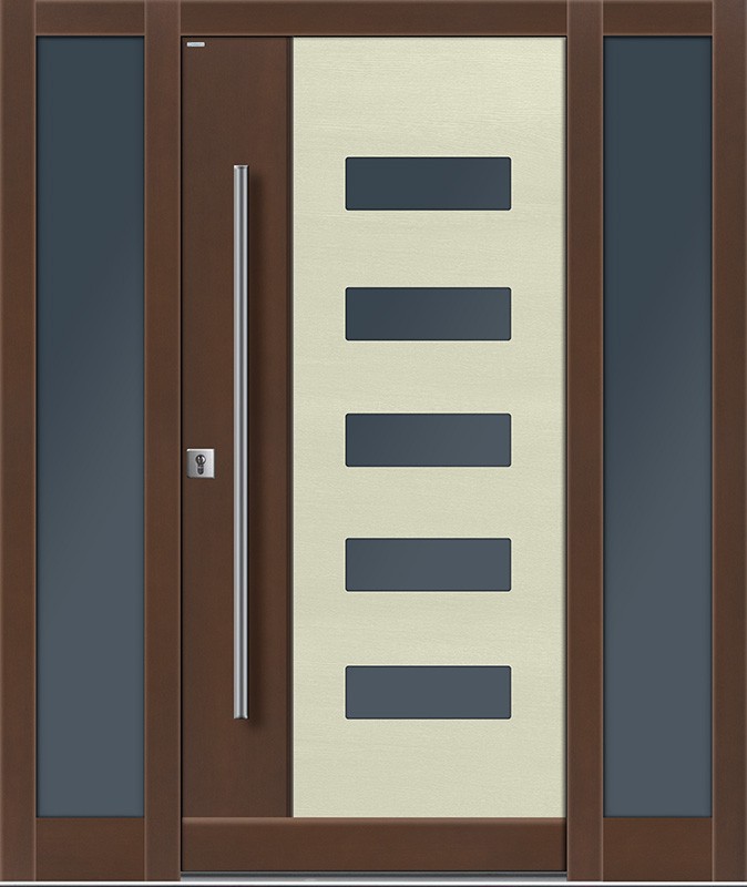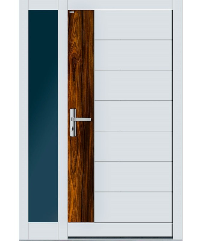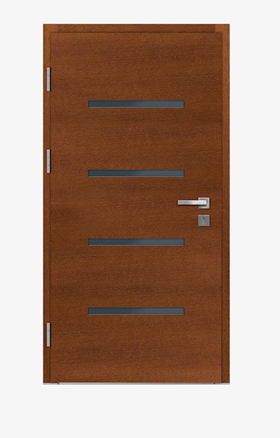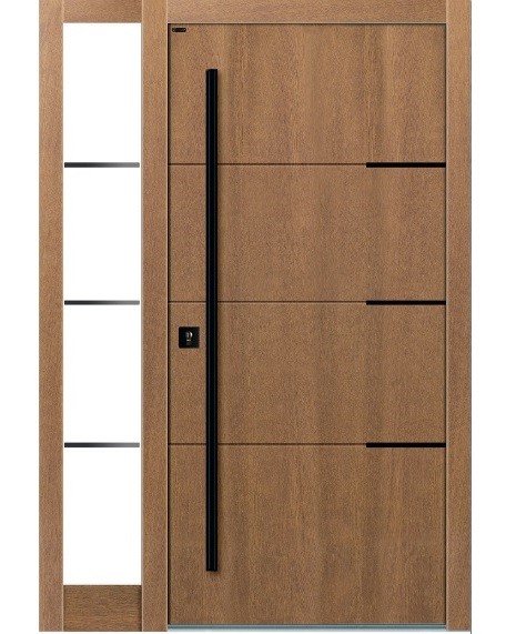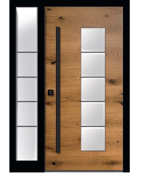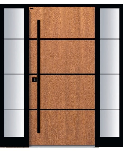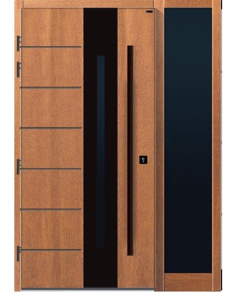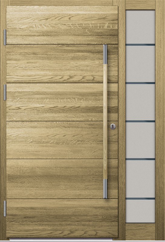 Możliwość stosowania drewnianych lamelli poziomych i pionowych to gwarancja wyjątkowego, przestrzennego desingu – drzwi zewnętrznych, których skrzydło nie jest płaską powierzchnią, dzięki temu zyskują wielowymiarowy charakter.