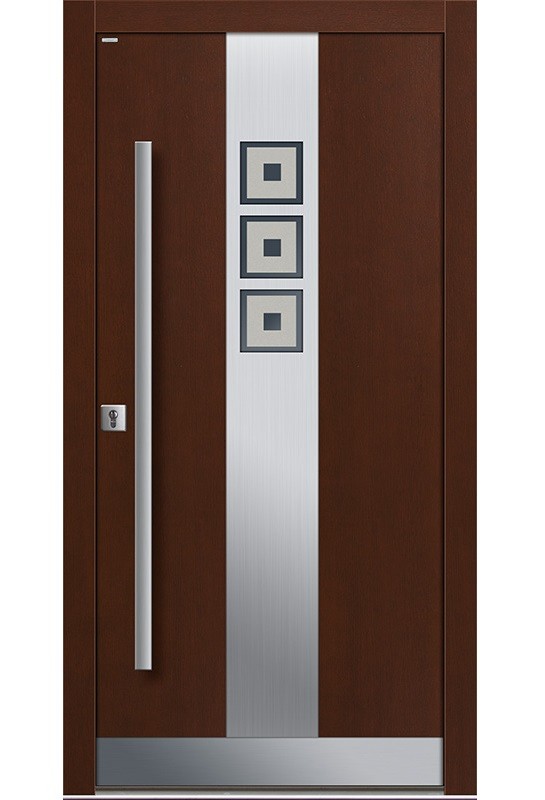 Drzwi zewnętrzne Top Design INOX to spójne powiązanie klasycznego piękna drewna z wyróżniającym okuciem INOX.