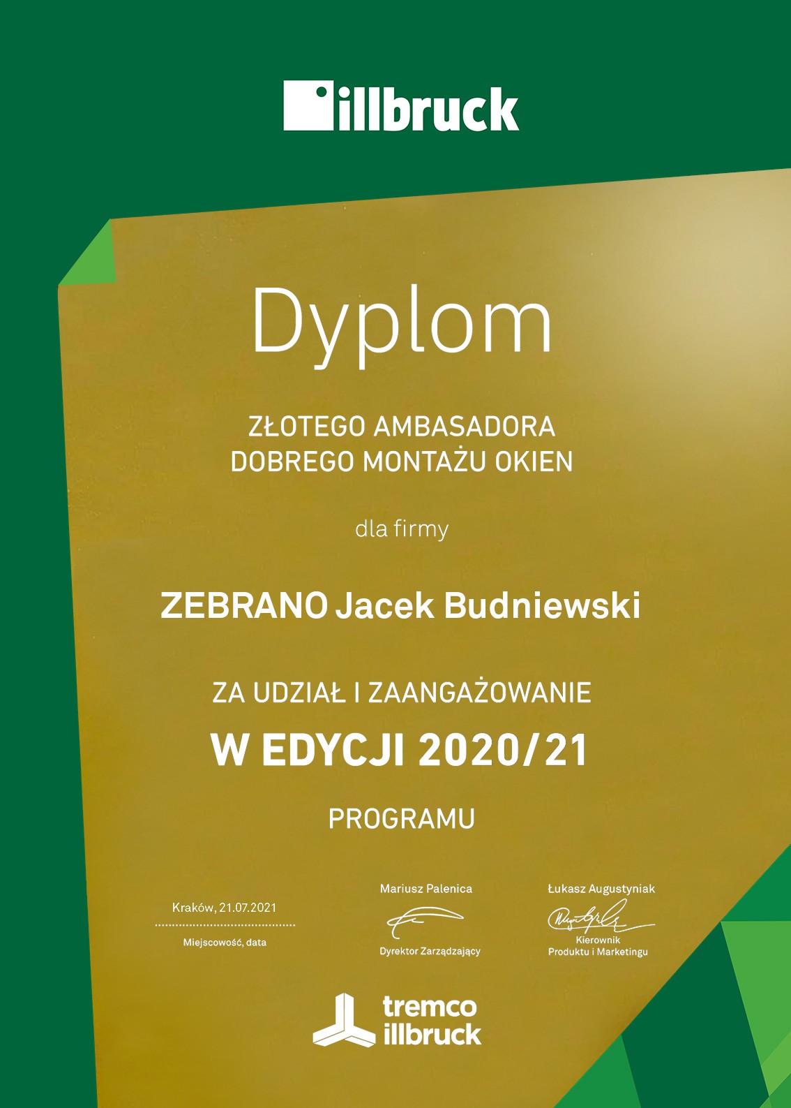 Firma ZEBRANO jest ZŁOTYM AMBASADOREM DOBREGO MONTAŻU ILLBRUCK